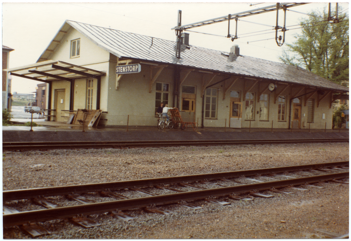 Stenstorps lilla stationshus flyttades 1873 och ändrades till betjäningshus på platsen. I stället byggdes ett nytt större envånings stationshus av sten, som sedemera tillbyggts .Stationen öppnades för trafik den 1/9 1859. Det första stationshuset byggdes 1858. Ny station, som ännu användes, uppfördes 1873 i samband med att HSJ öppnade för trafik. Gamla stationshuset revs 1995-04-25 för att ge plats åt de nya plattformarna.