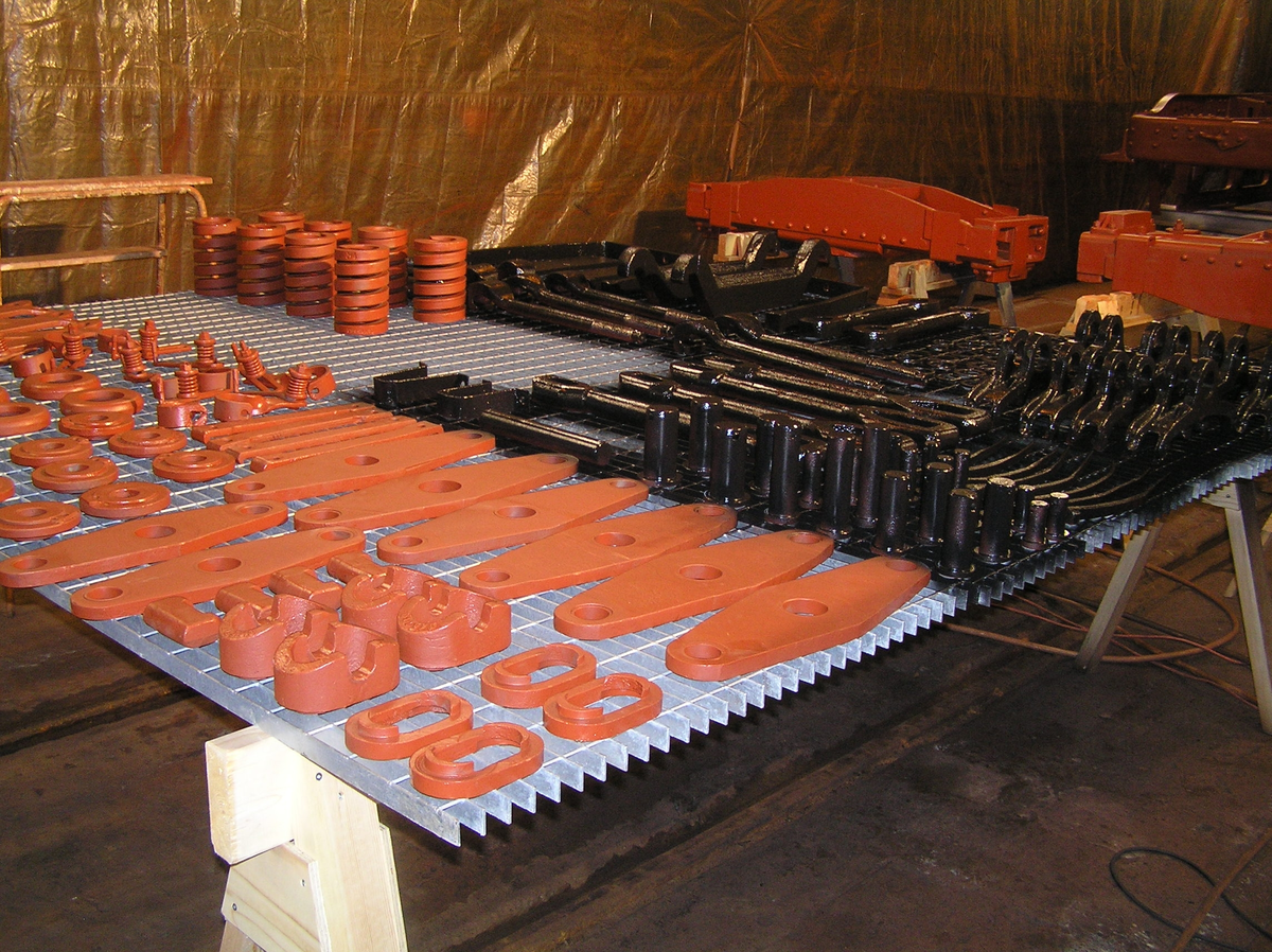 Detaljer till boggi för SJ Ro2 2702 demonterade och rostskyddsbehandlade.