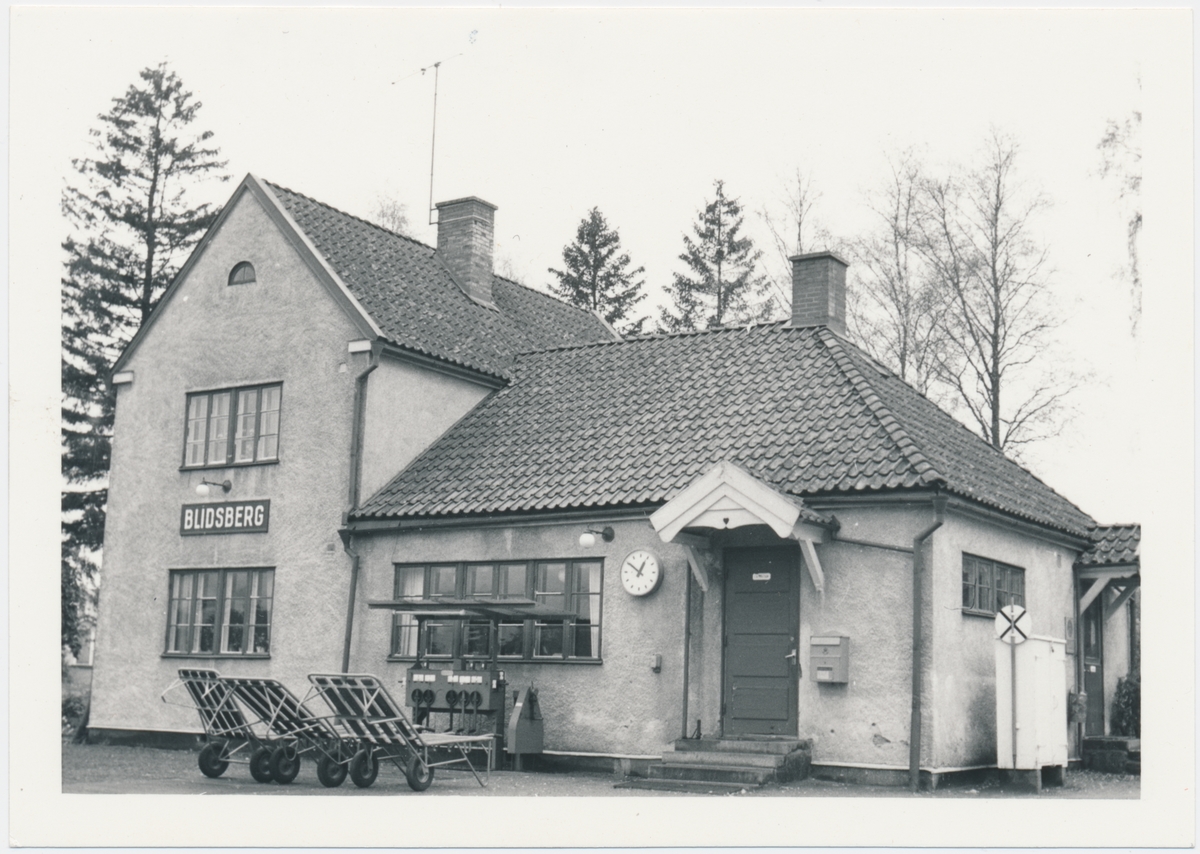 Station anlagd 1906. Efter en eldsvåda, som ödelade det gamla stationshuset, uppfördes nuvarande byggnad, en- och tvåvånings, putsad. Öppnad 1906-12-21. Gemensam post- o jvgstn. Det första stationshuset brann ned 1920-01-26, stinsen hade glömt ett strykjärn påslaget och ett nytt stationshus byggdes