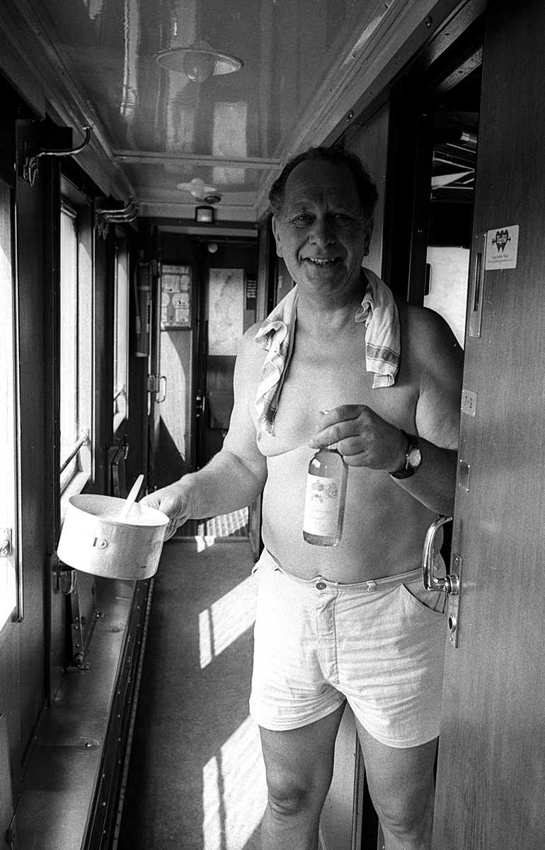 Resande i dörren till sovvagnskupén