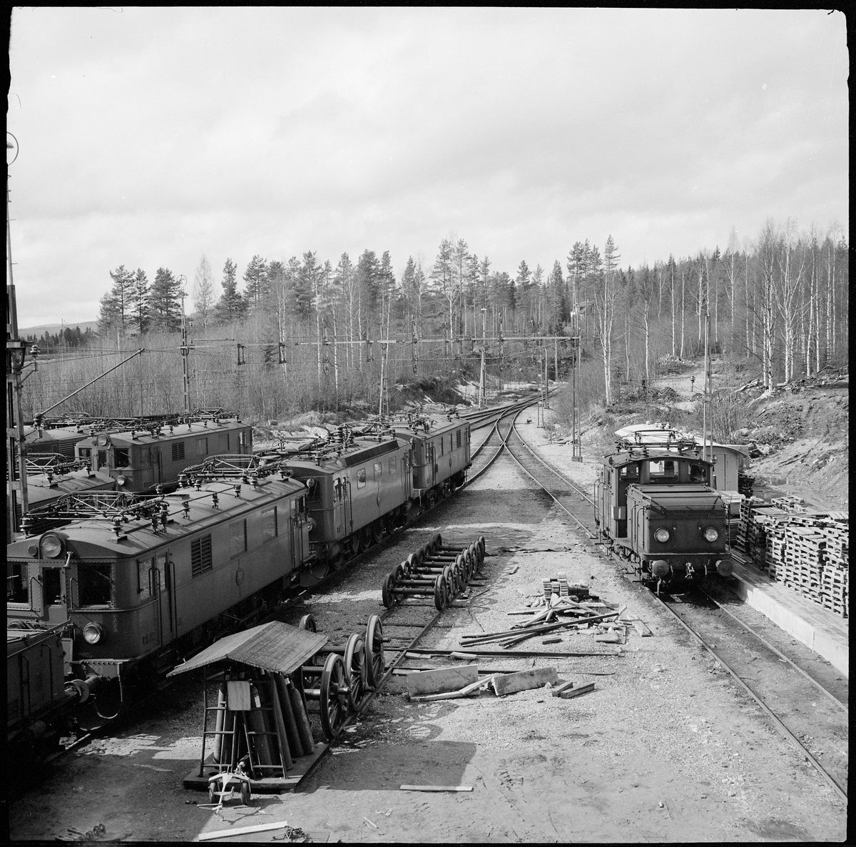 Lok på baksidan av lokstallet i Ånge. Däribland SJ Ds 327. Statens Järnvägar.