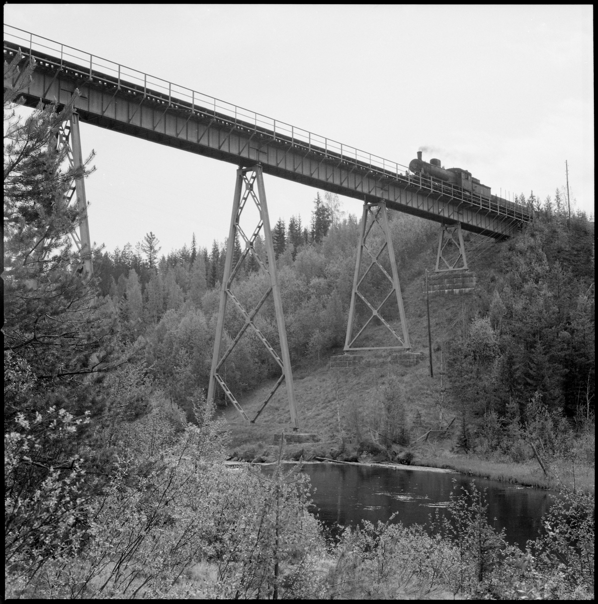 Godståg på bron över Röån på väg mot Hoting. På sträckan mellan Gåreleselet och Tågsjöberg.