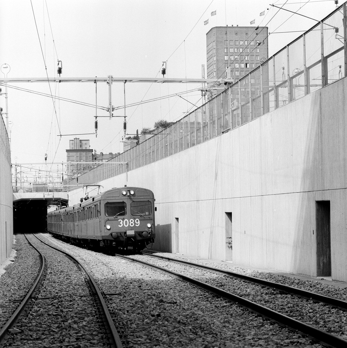 Statens Järnvägar SJ X1 3089 motorvagnståg i genom tunnel