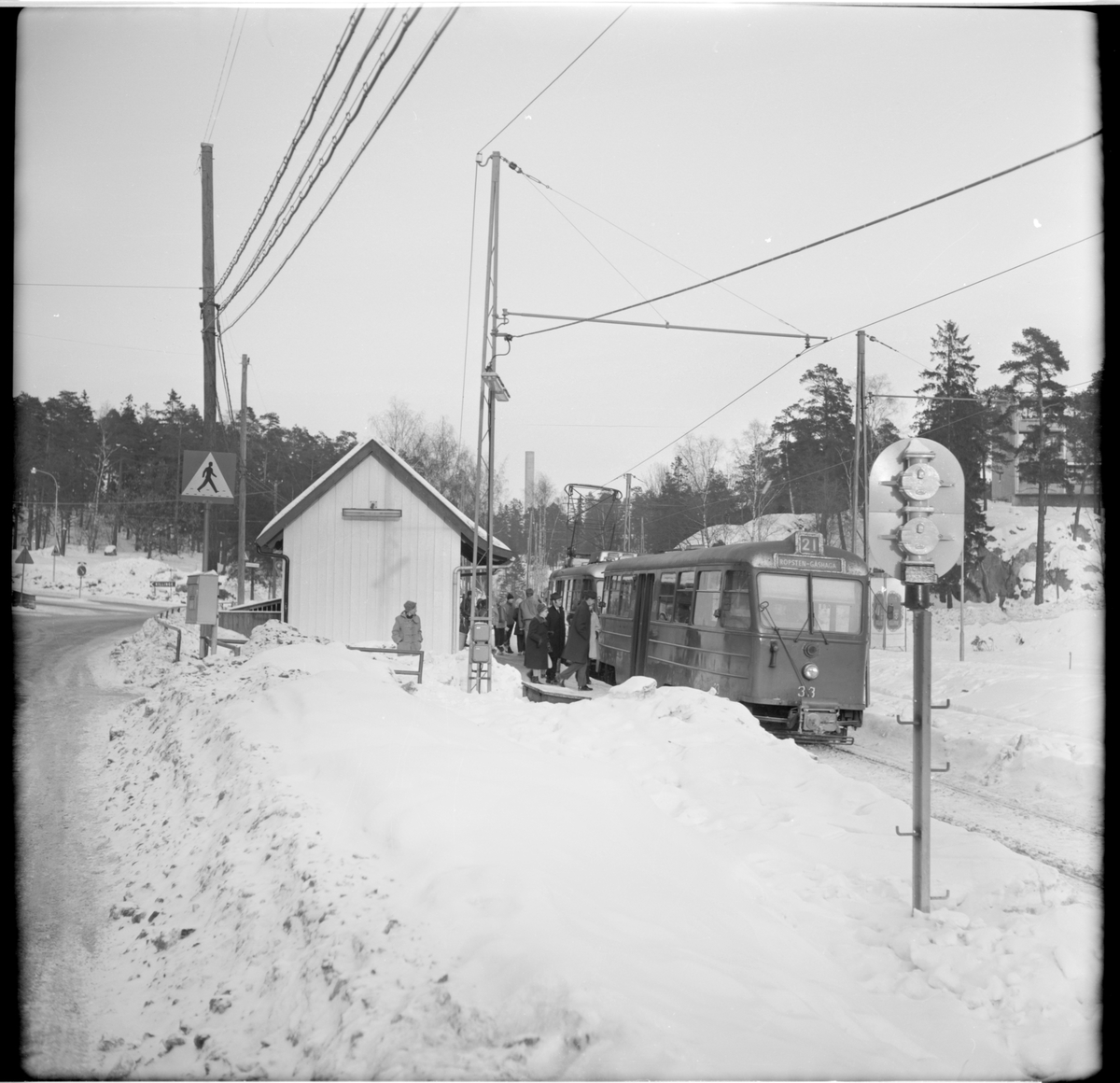 Trafik Aktiebolaget Stockholm Södra Lidingöns Järnväg, SSLidJ B24(A) 33 "ängbyvagn" linje 21 Ropsten - Gåshaga på Käppala hållplats.