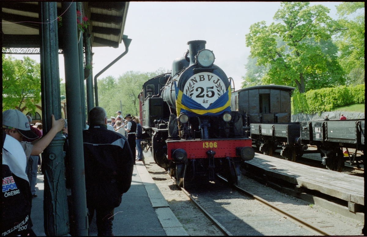 Nora Bergslags Veteran-Jernväg, NBVJ firar 25 år, 2003. Statens Järnvägar, SJ Sb 1306, Krylbo - Norbergs Järnväg, KNJ P 54 och Nora - Karlskoga Järnväg, NKJ vagn 117 är fordonen som syns.
