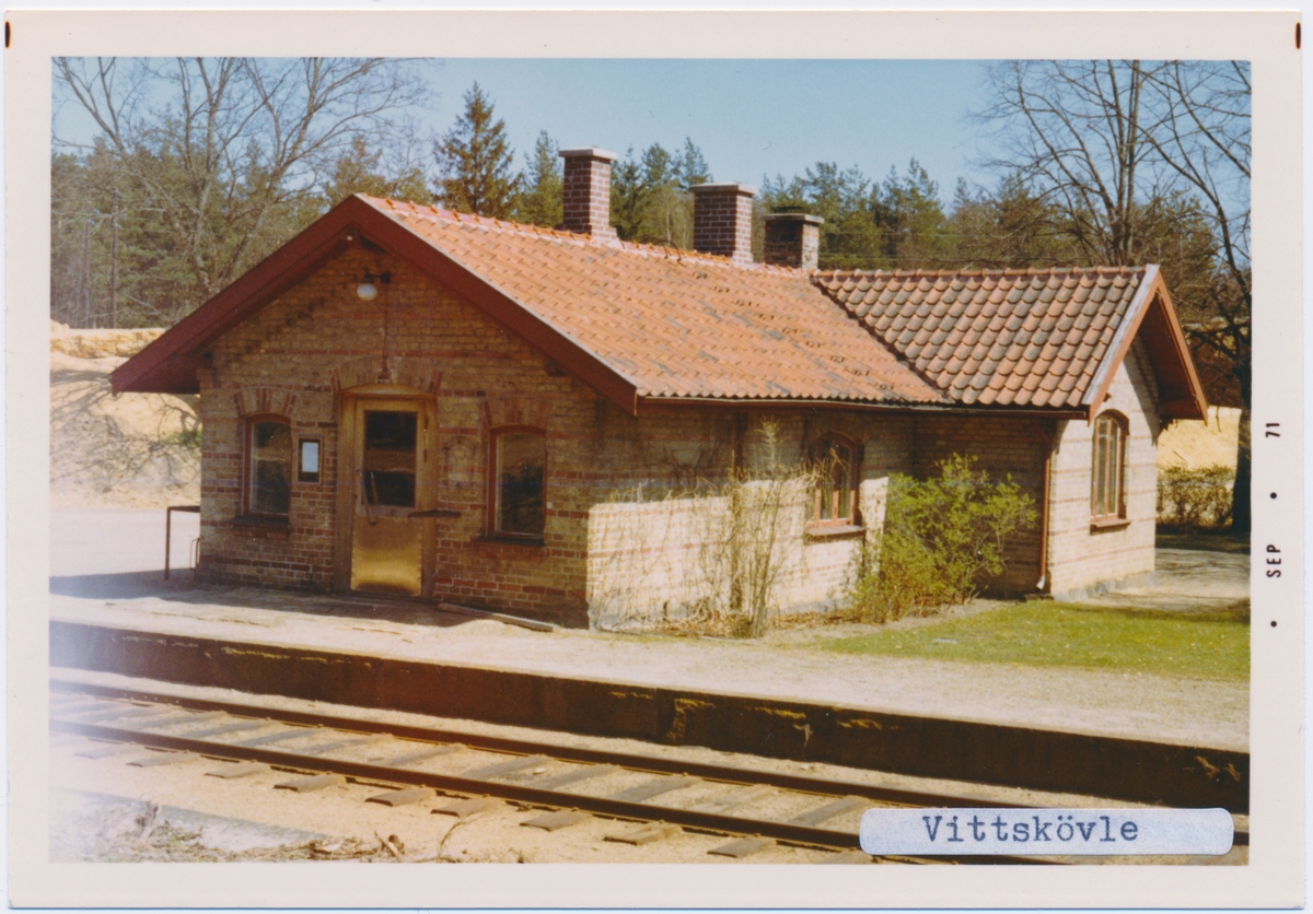 Stationen byggd 1881.Hållplats anlagd 1880. Envånings stationshus i tegel, byggt i vinkel. Stationshuset används för fritidsändamål av SJ-personal 1991. Uthus och lastkaj finns kvar, godsmagasinet är rivet. Sidospår med godstrafik fanns till våren 1988 till Vittskövle Sågverk. "Huset ser ut att ha stått öde sedan trafiken upphörde. Det är övervuxet med utslagna rutor, men taket och de stabila tegelvägggarna finns kvar. Banvallen är cykelväg. Stationshuset och en perrong ligger på banans östra sida, där det också finns ett mycket stort sågverk. På banans västra sida ligger en mycket lång lastkaj med flera avsnitt med olika höjd. (Besök juli 2012)." Enlig tbanvakt.se