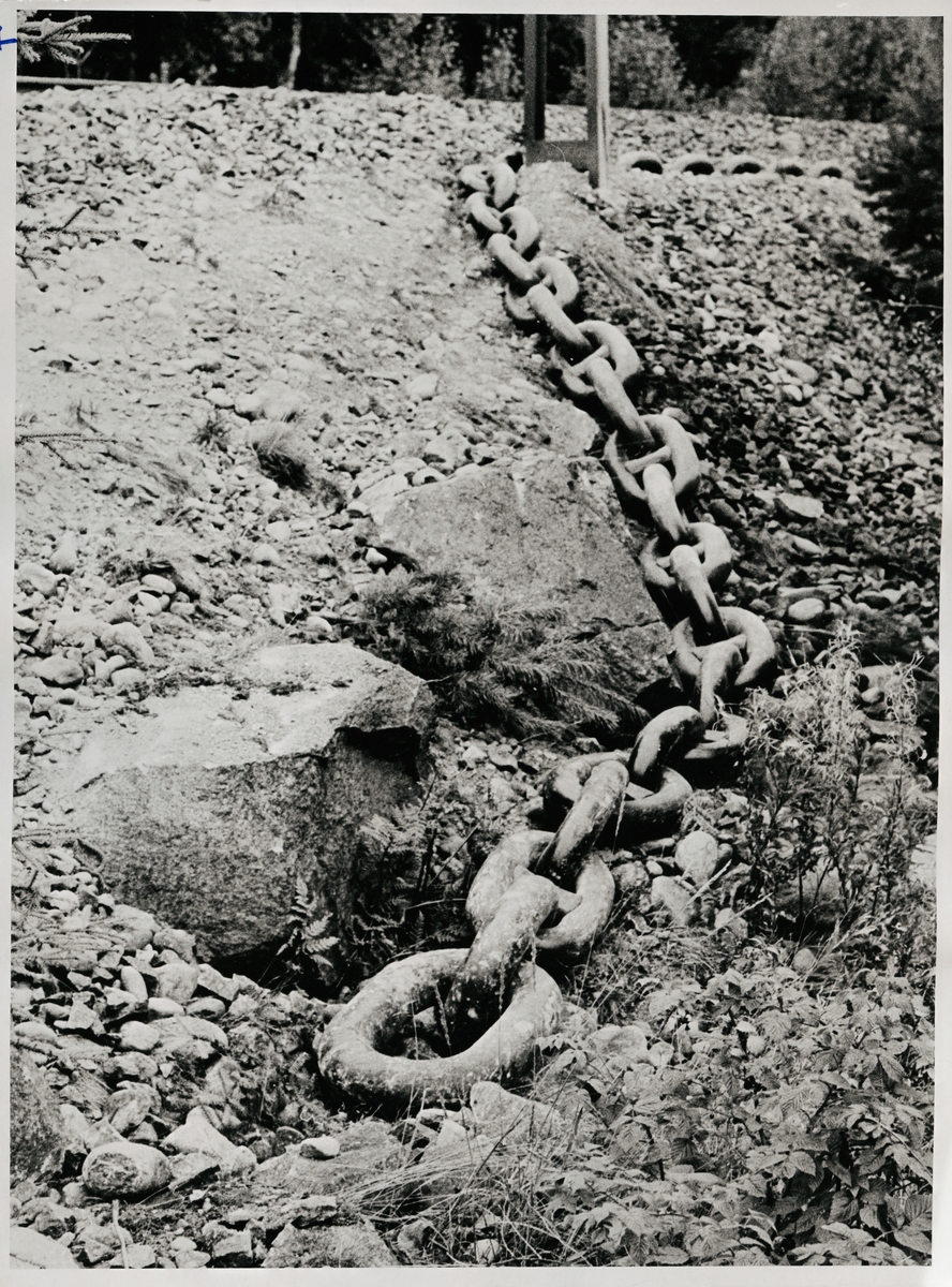 Titel: Stödkätting som ramlat av godsvagn vid Storsjöbaden mellan Skallgårdsund och Sandarne i Söderhamn september 1980.