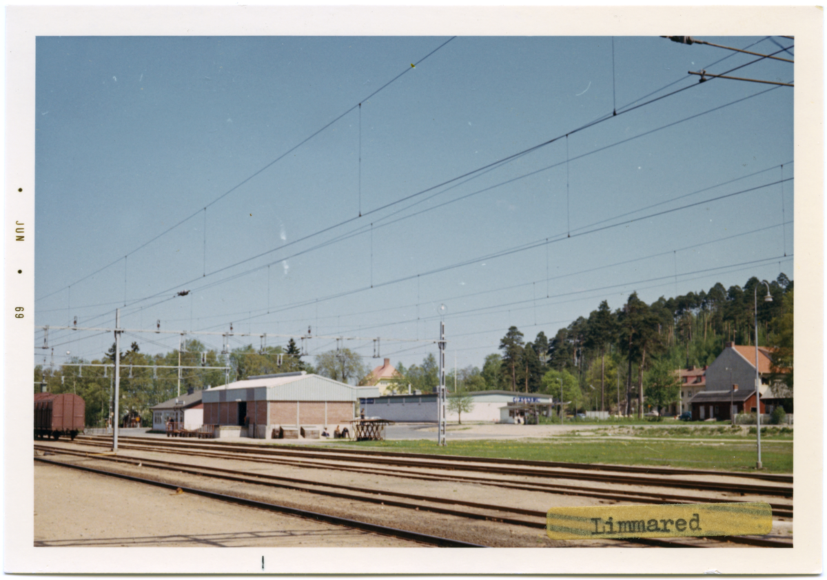 Vy vid Limmared. Stationshuset toligen byggt mellan 1964-1966 efter SJ Arkitekskontor Stockholms ritningar.