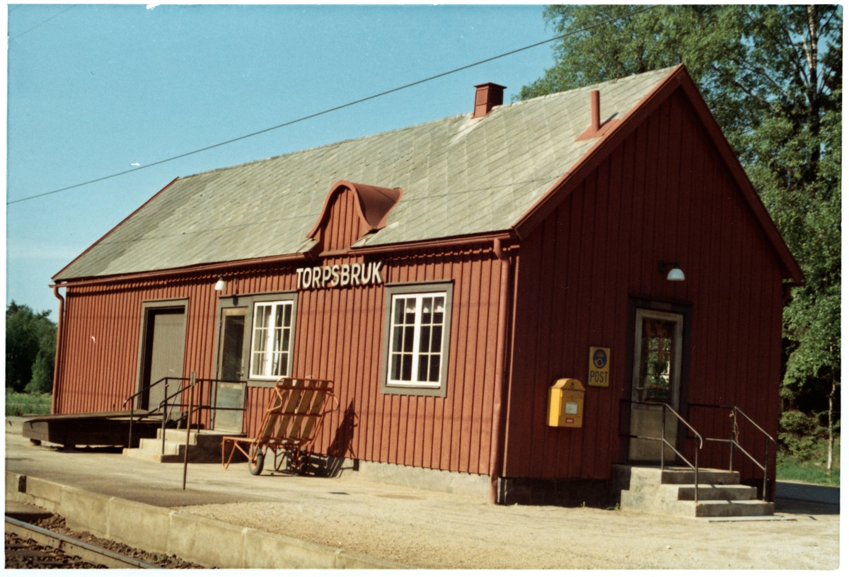 Hållplats anlagd 1923. Envånings stationshus i trä