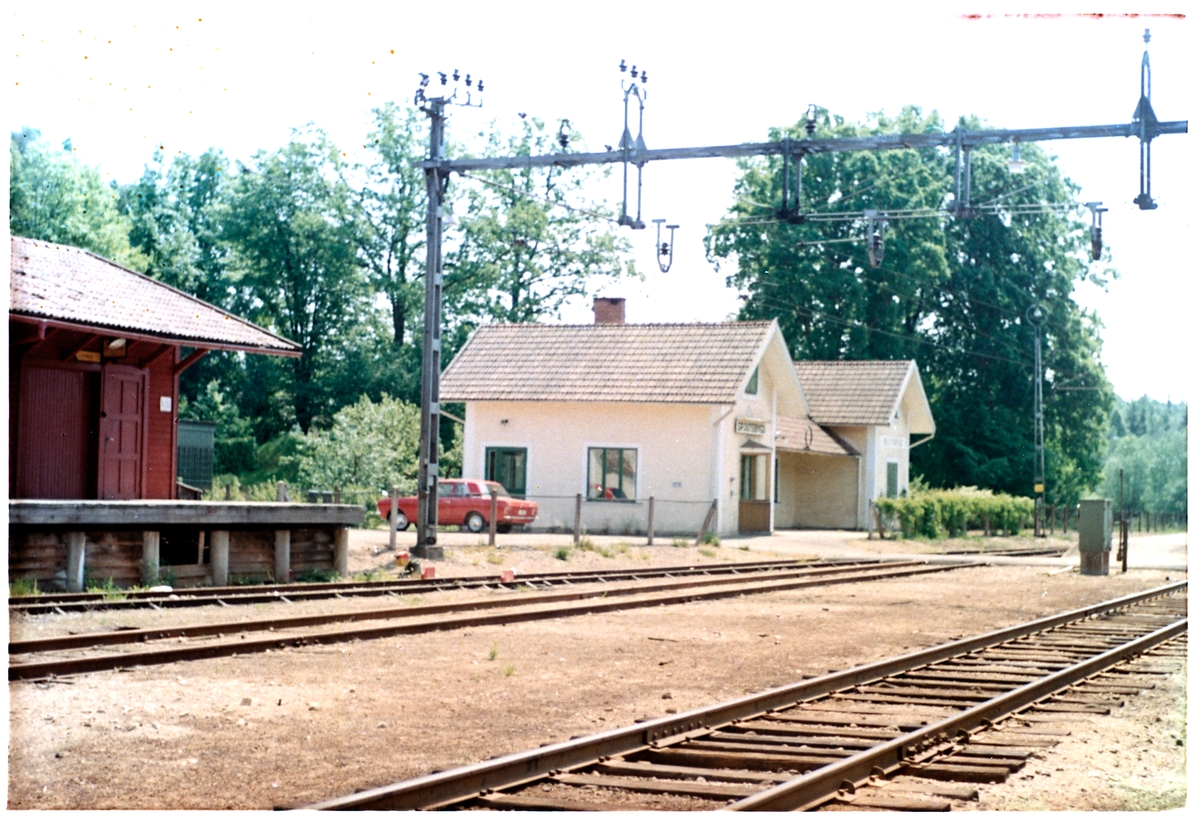 Station anlagd 1874. Envånings putsad stationsbyggnad med två gavlar mot banan.