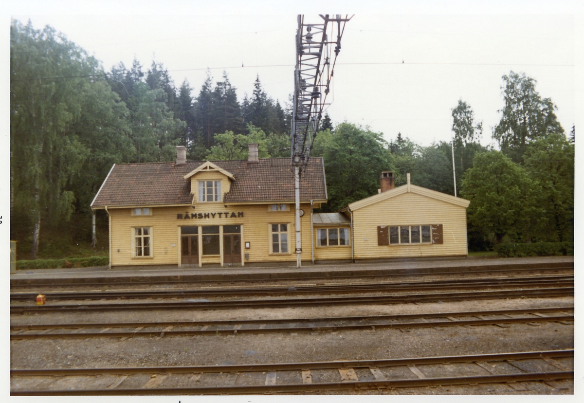 En- och enhalvvånings stationshus i trä. Väntsalen tillbyggdes 1936.