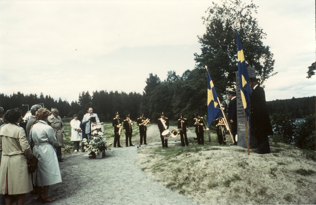 Ceremoni vid återinvigningen av minnesstenen vid Lyckan.