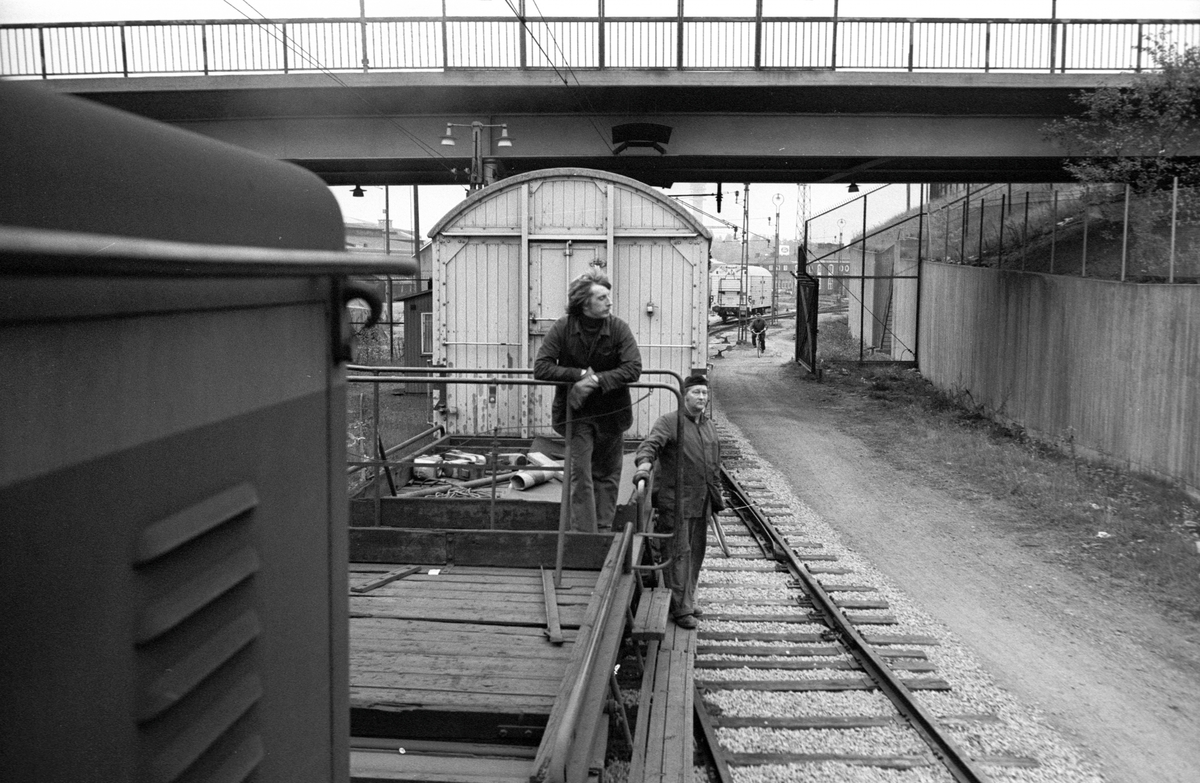 Värtabanan, spåren mot Stockholm frihamn. Gatubron förbinder Tegeluddsvägen med Södra Hamnvägen.