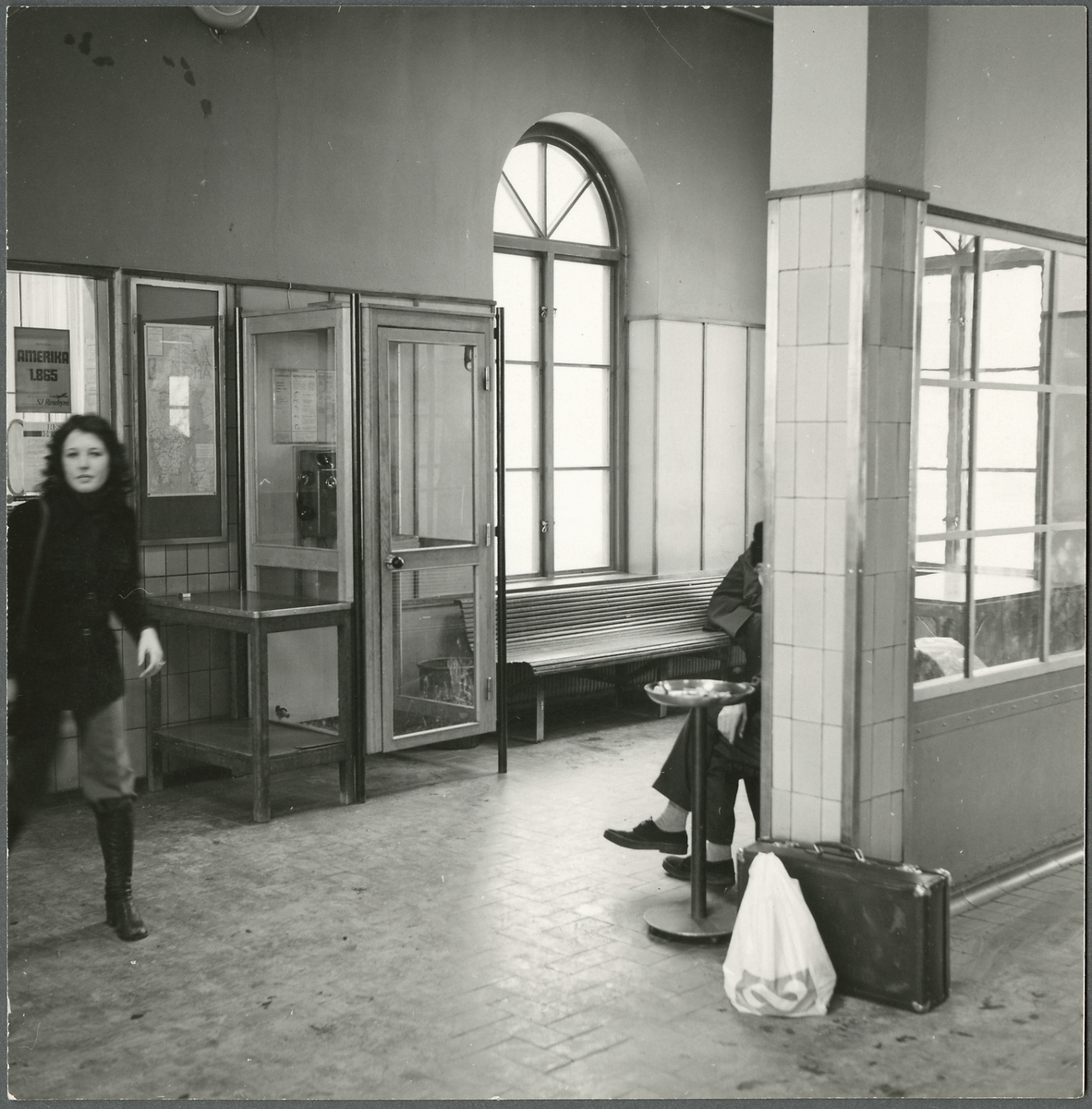 Resande i väntsalen på Nässjö station.