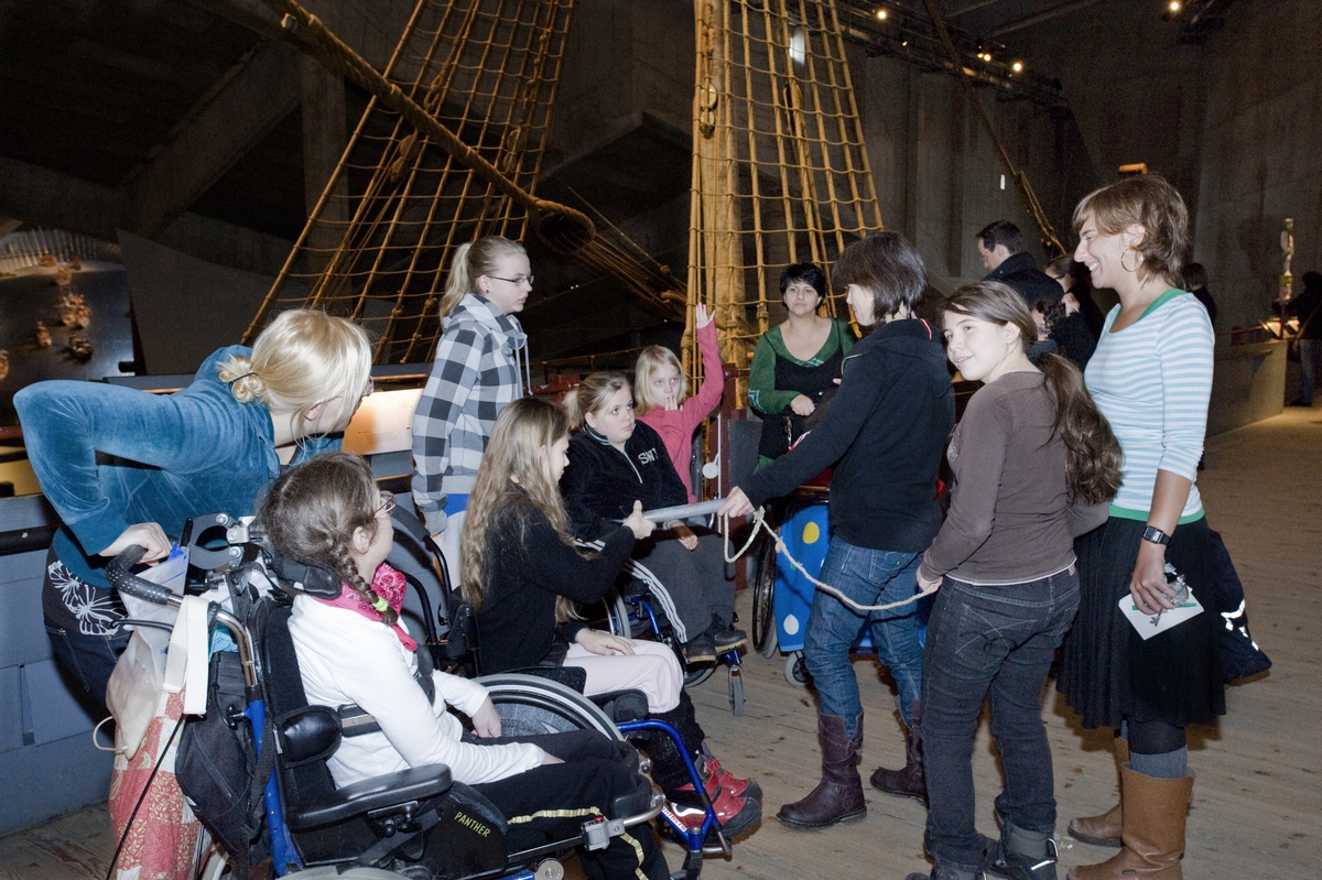Assistent, Julia S, assistent, Julia H, Therese, Filippa, Inger, Laura och Sofia känner på propplod.
