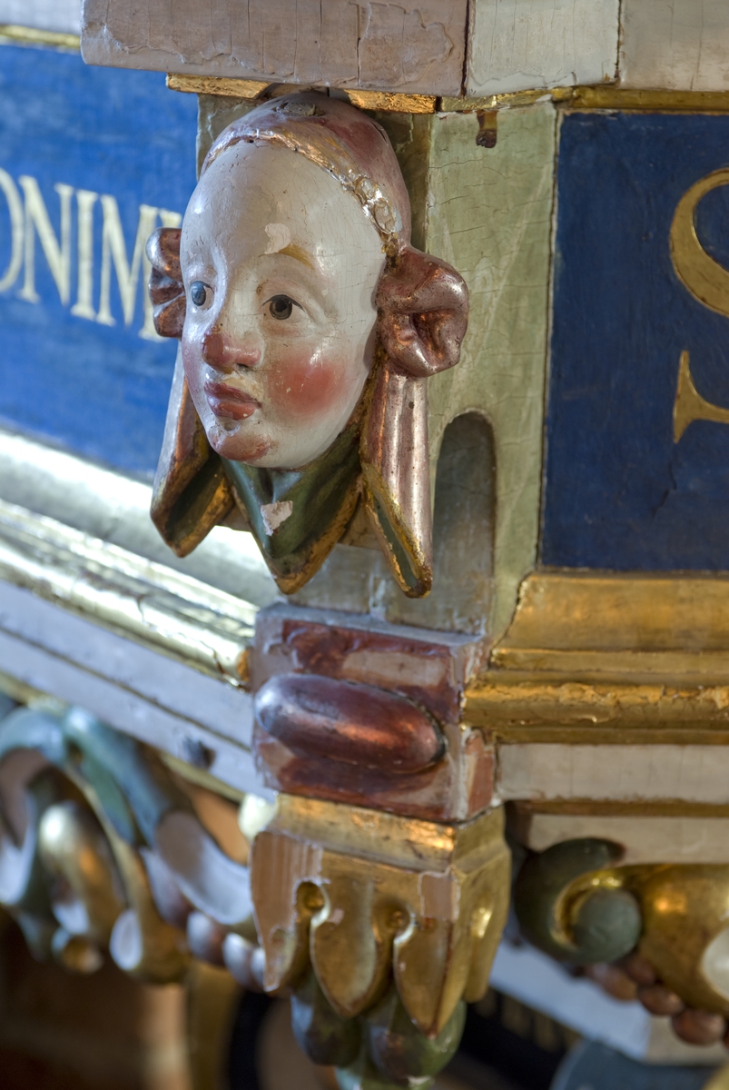 Detaljer i Skokloster kyrka-färgstudier inför bemålningen av Vasa-modellen i skala 1:10