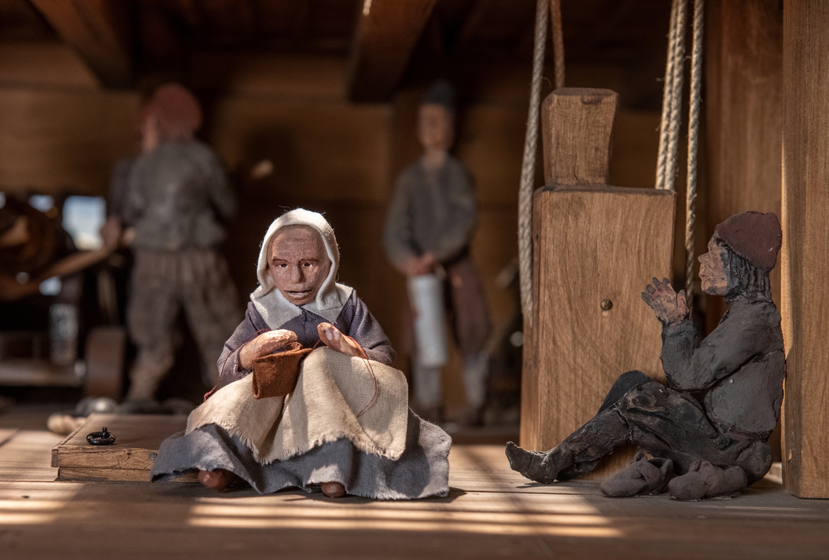 Utställning "Livet ombord" med dom nya kvinnofigurerna i genomskärsmodellen.