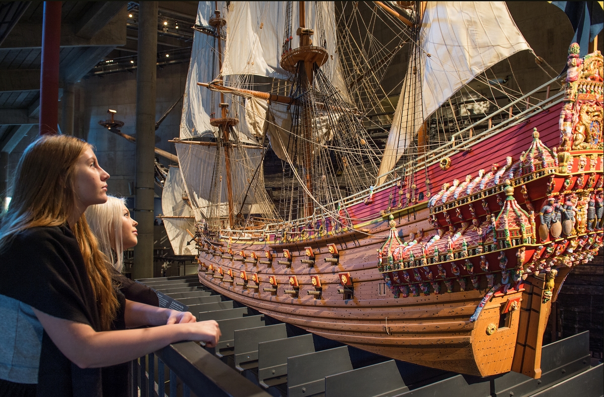 Vasamodellen i skala 1:10: betraktas av två besökare.