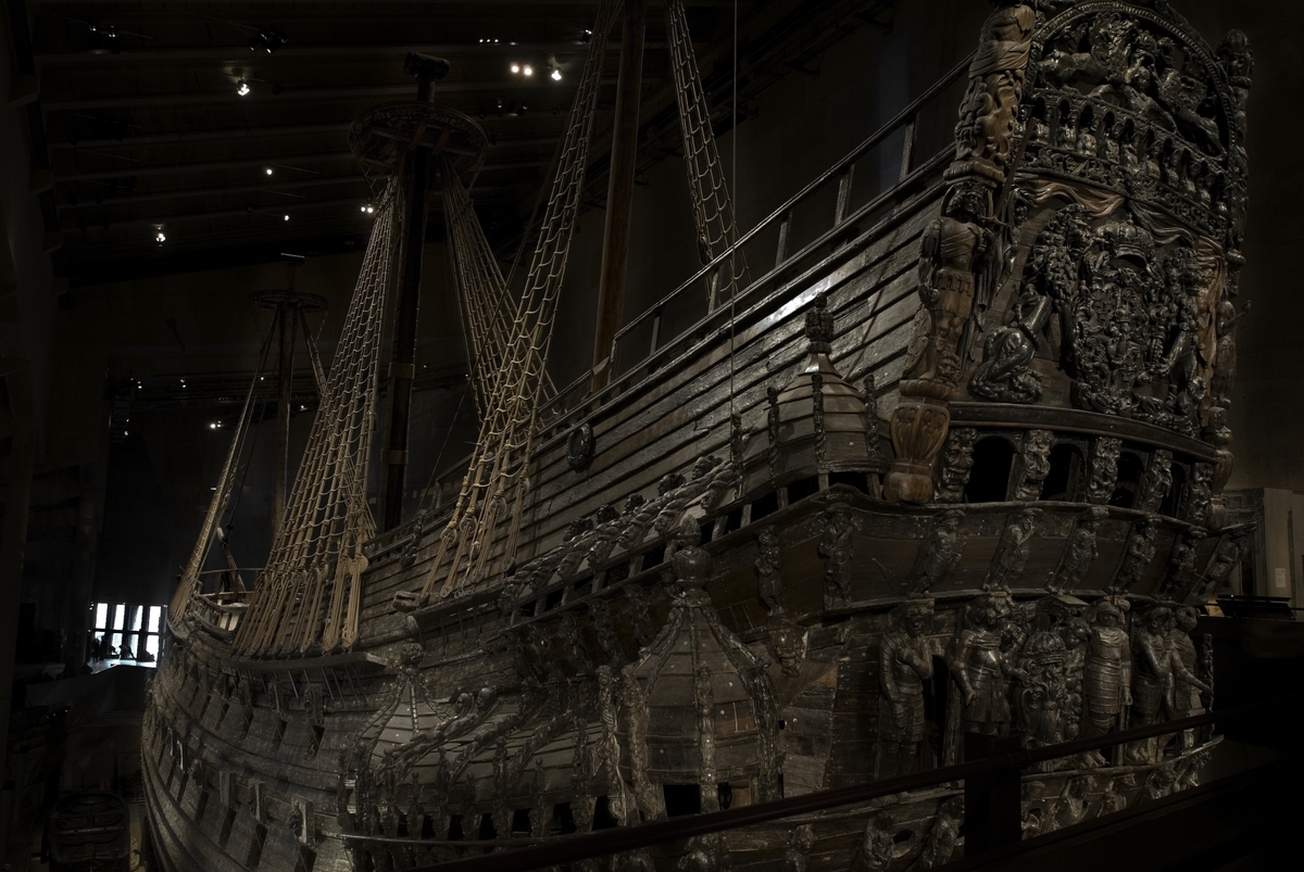 Vasaskeppet i hallen/museet. Akterifrån. Babord.