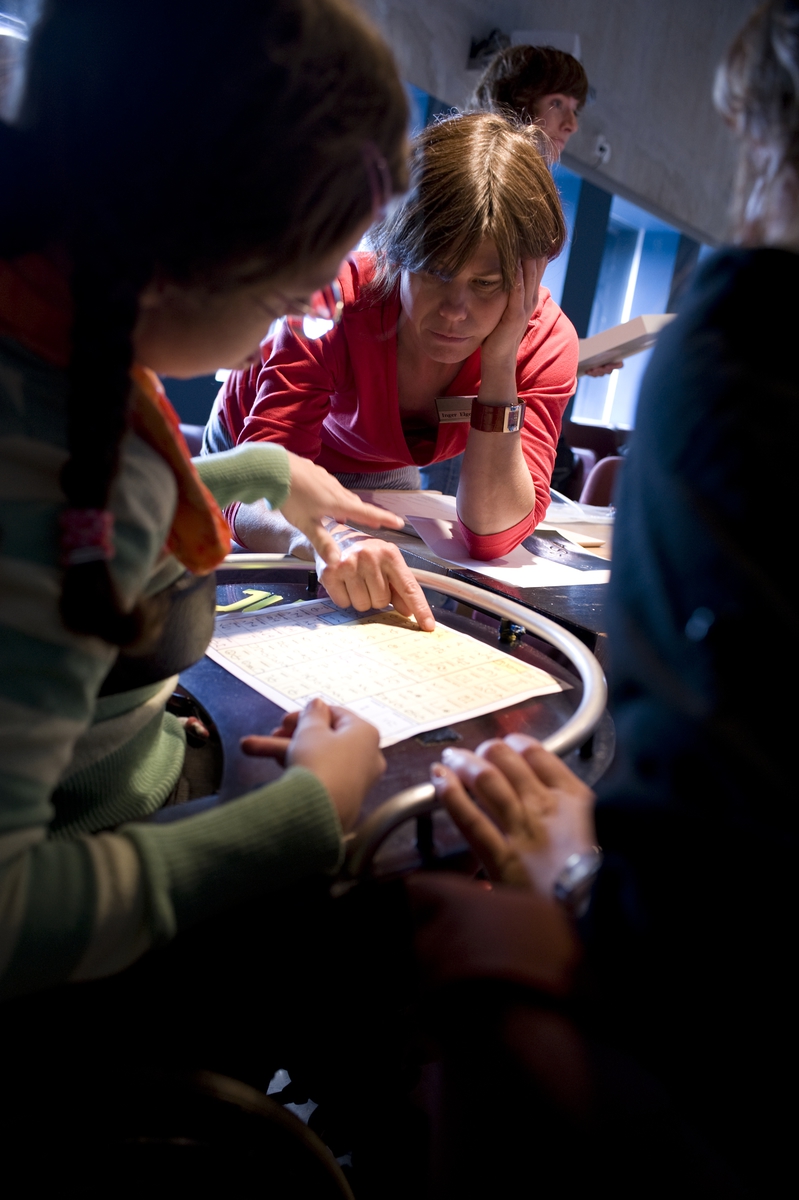 Referensgruppen i projektet Alla Ombord testar utrustning 27 sept 2008. Inger Elgestedt går igenom bliss symboler med Julia Snees
