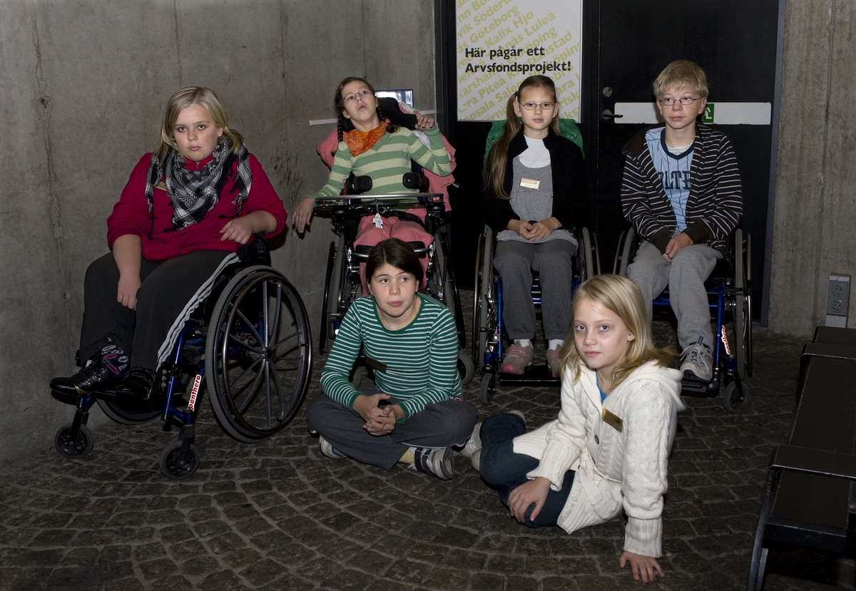 Referensgruppen i projektet Alla Ombord testar utrustning 27 sept 2008. Therese Sundqvist, Julia Snees, Julia Hedenström, Fredrik Johnsson, Laura Stridh Guerra och Filippa Kritz