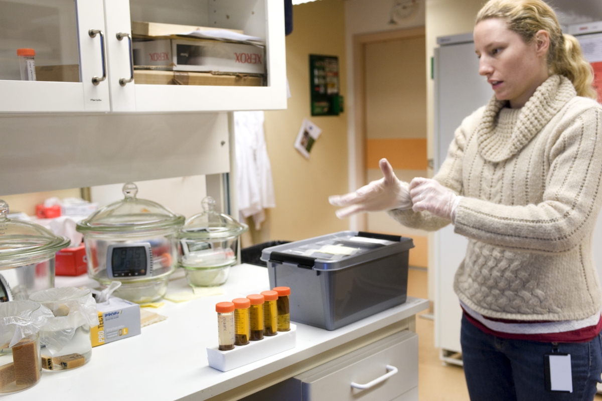 Ingela Bjurhager vid Institutionen för polymerteknologi KTH visar sin miljö och sina projekt.
