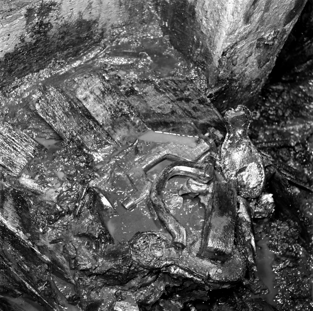 Rester av tunna med innehåll vid kanonport 3, undre batteridäck förut, styrbord.