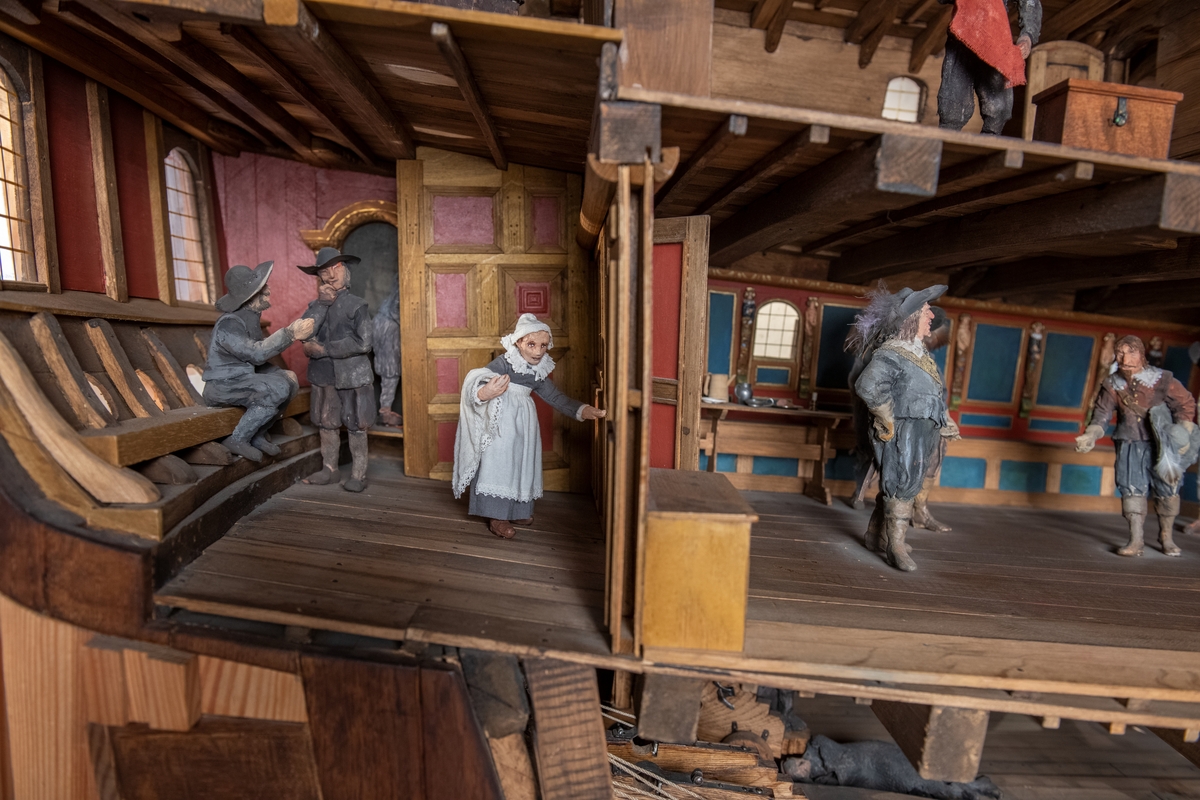 Titel: Utställning "Livet ombord" med dom nya kvinnofigurerna i genomskärsmodellen.