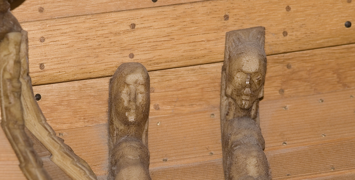 Titel: Vasa 1:10 modellens bemålning 07-08. Alla figurer innan bemålning. Bemålning 1:10 modell Vasa. Figurerna babord akter 1:10 modell Vasa.