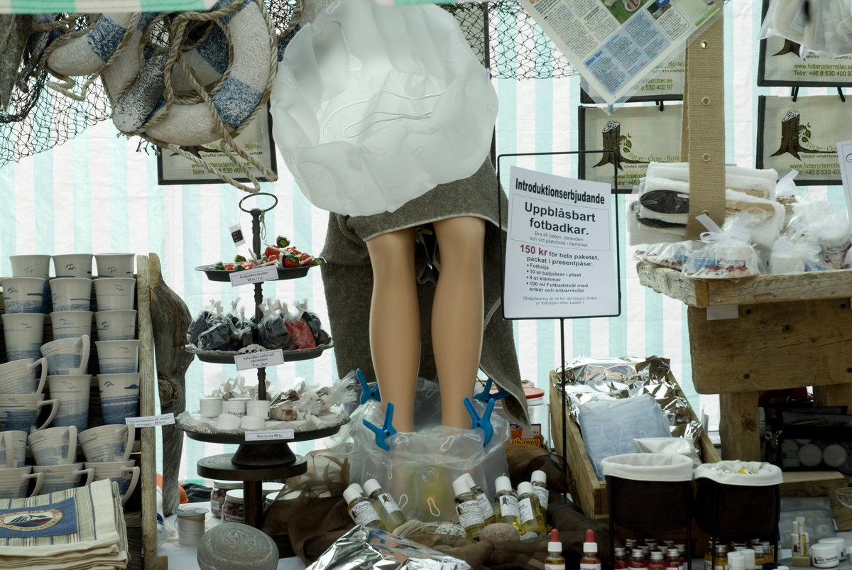Marknadsstånd t ex Lenas textil och Riitas fötter-örter-rötter.