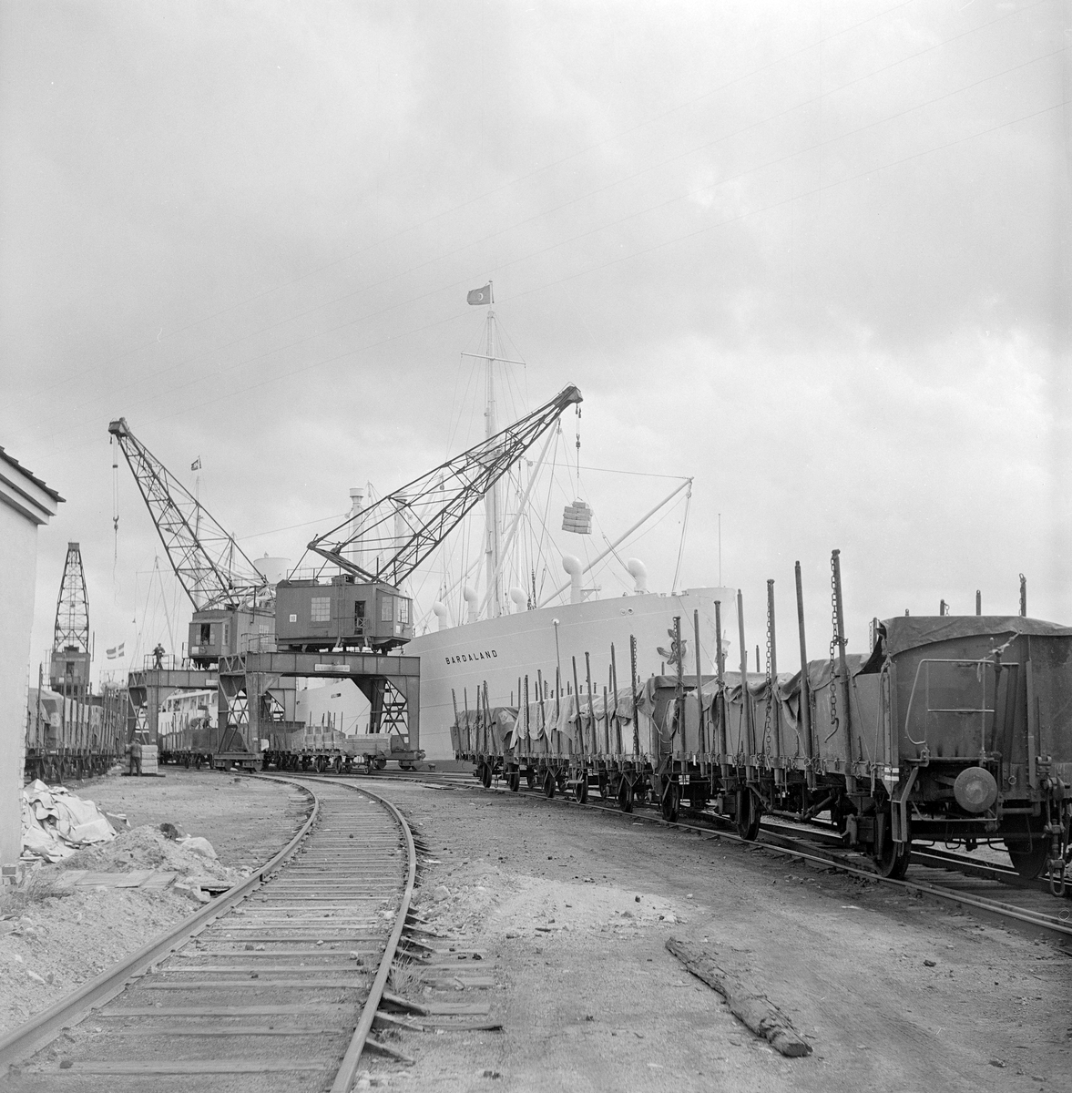 Godsvagnar och fartyg Bardaland i Gävle hamn.