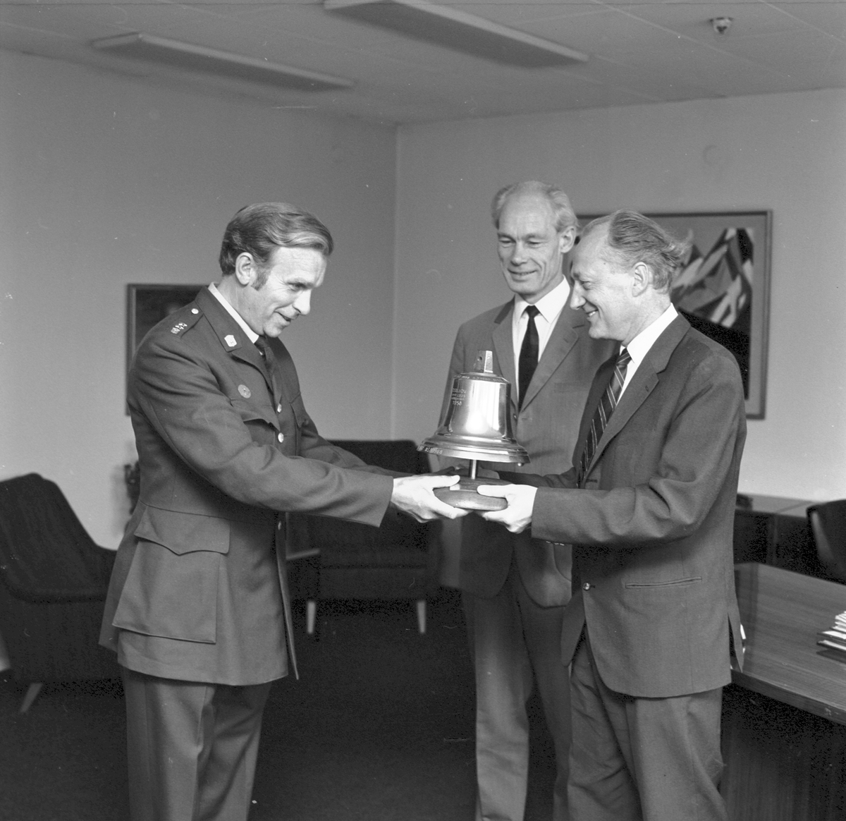 Driftvärnspristagare Lennart Barck hämtar pris hos Tollin. I bakgrunden E. Enocsson