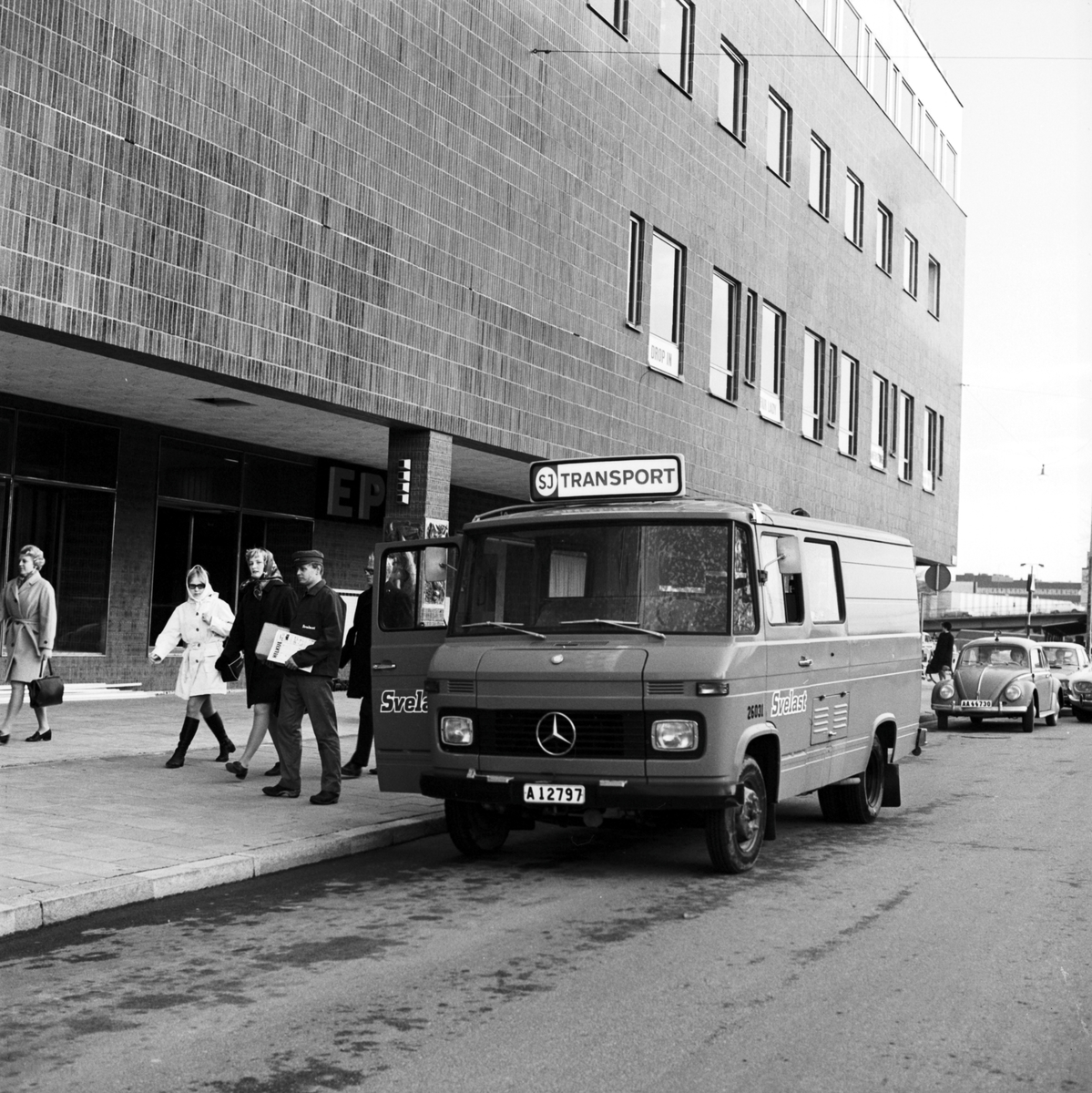 Statens Järnvägar, SJ Transport-skylt på Svelast-bil. Foto för Karek, (Rådström)
