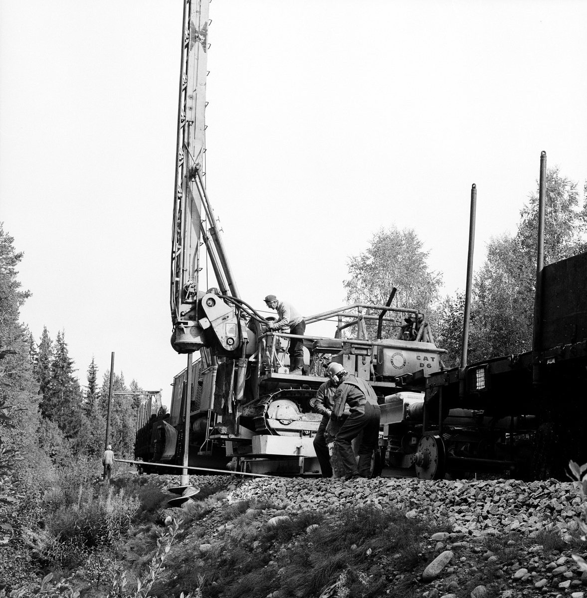 Titel: Elektrifieringsarbete på linjen mellan Rättvik och Mora, stolpresning.