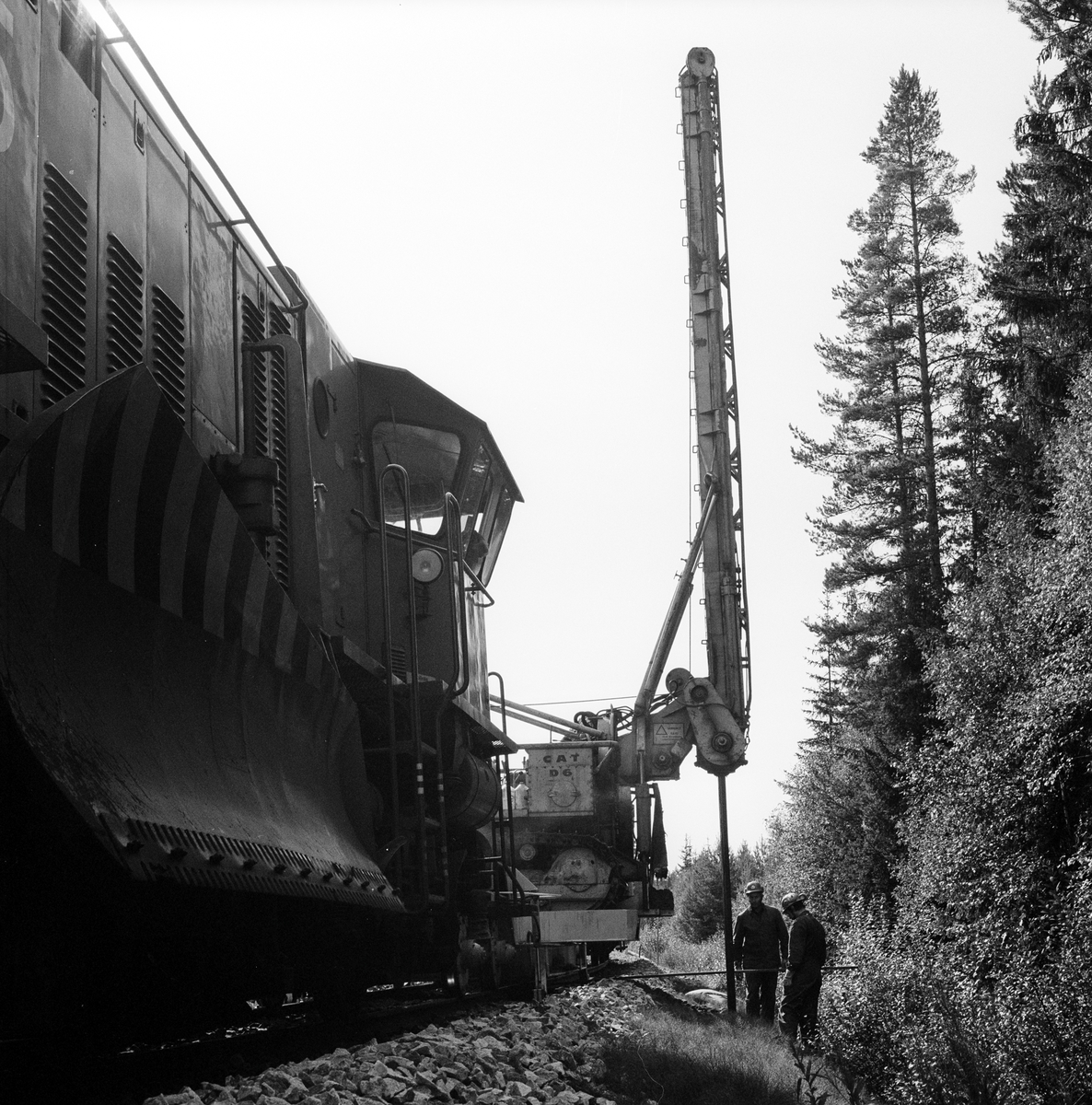 Titel: Elektrifieringsarbete på linjen mellan Rättvik och Mora, stolpresning.