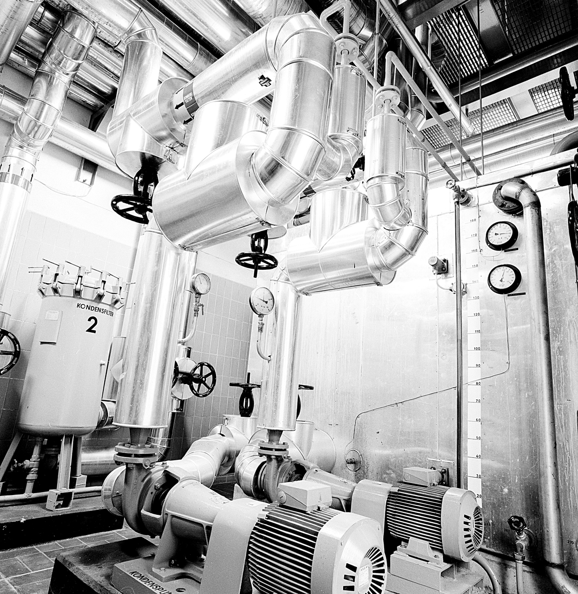 Titel: Statens Järnvägar, SJ, driftverkstad "Hagalund Övre" för underhåll av fjärrgående vagnar och lok. Ångcentral med värmecentral, lokstall med driftverkstad, vattentorn, vagnhall för service med mera. Ångcentral - värmecentral, detalj