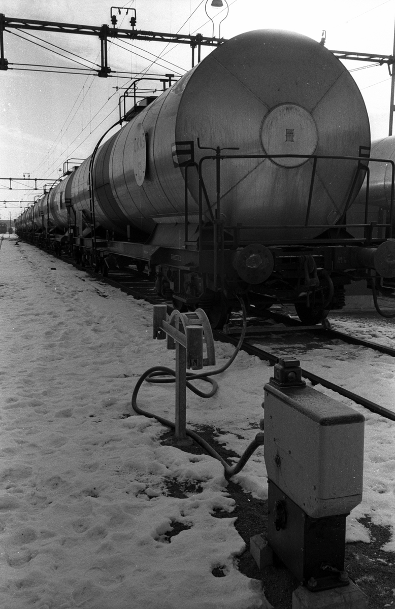 Oljetransport Uppsala - Gävle. Tankvagn kopplad till värmepost