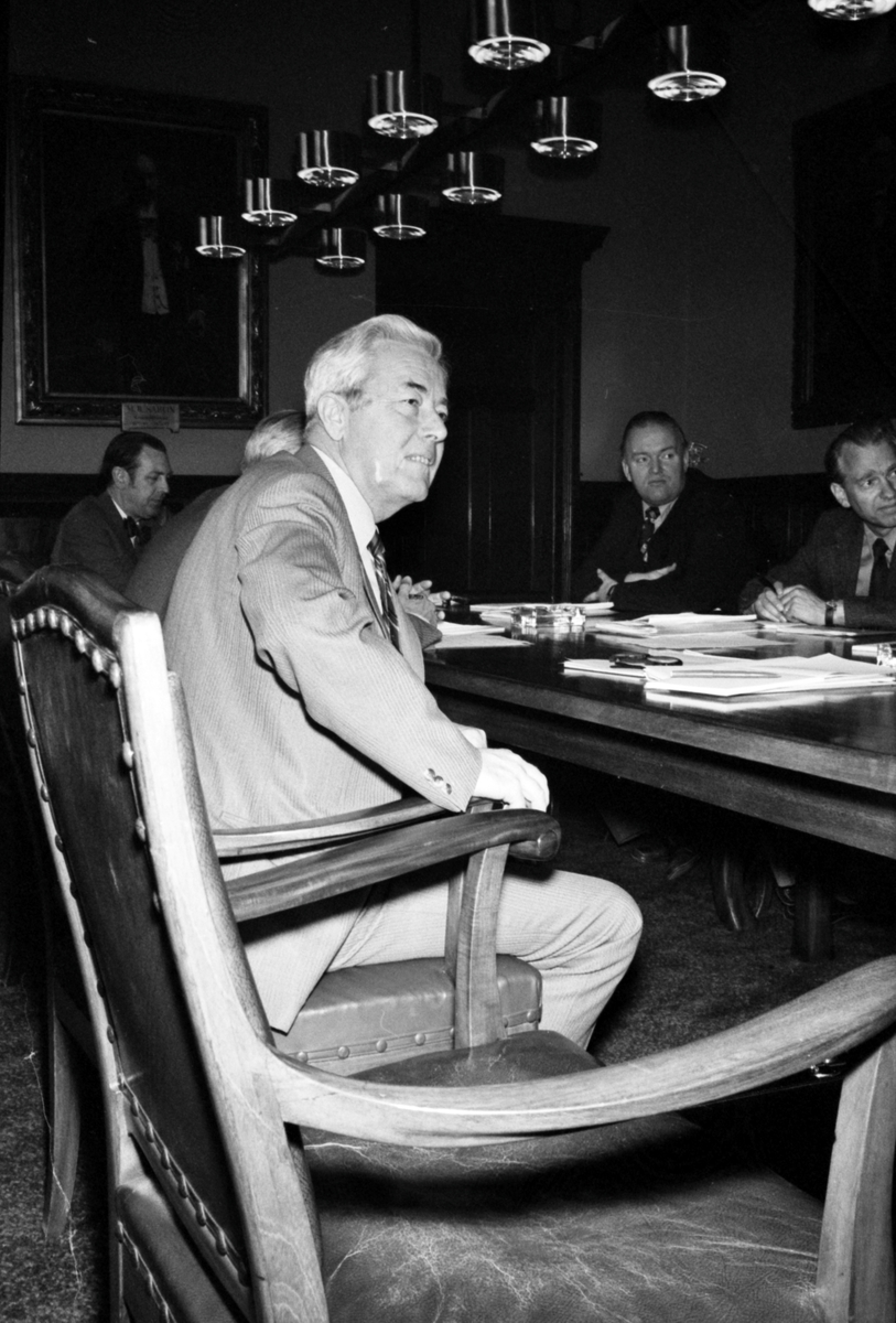A. Ekelund avtackas med blommor av generaldiriktör. Lars Peterson.