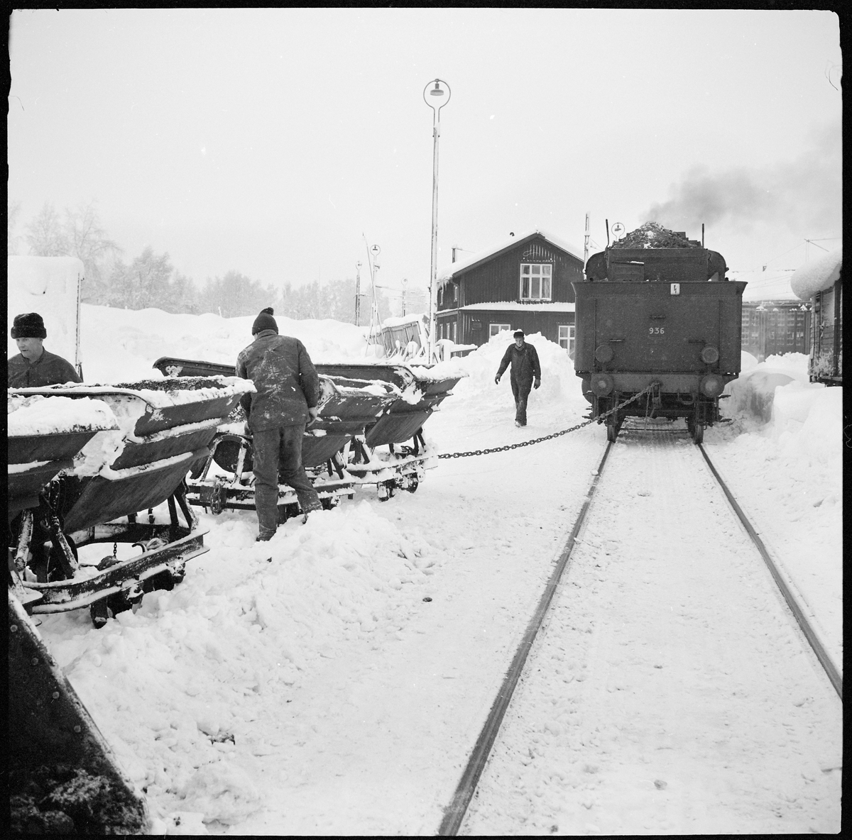 Titel: Urspårning på decauvillebana med SJ E2 936 samt grusvagnar.