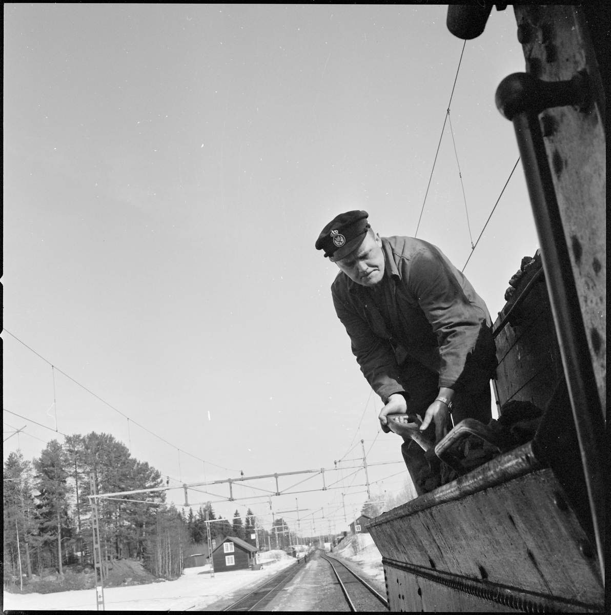 Lokeldare Runo Vestin öser upp kol som rasat från tendern.