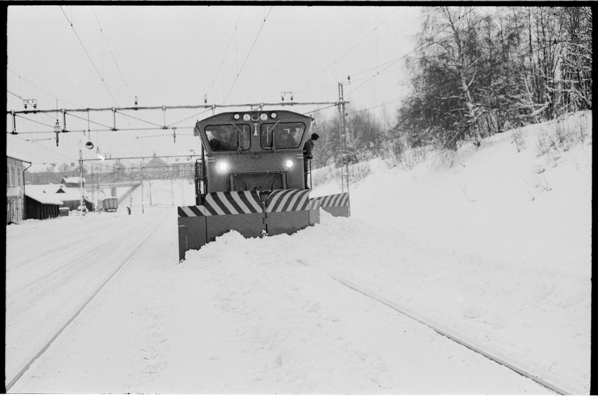 Statens Järnvägar, SJ Tb med plog under snöröjning på Sollefteå bangård.