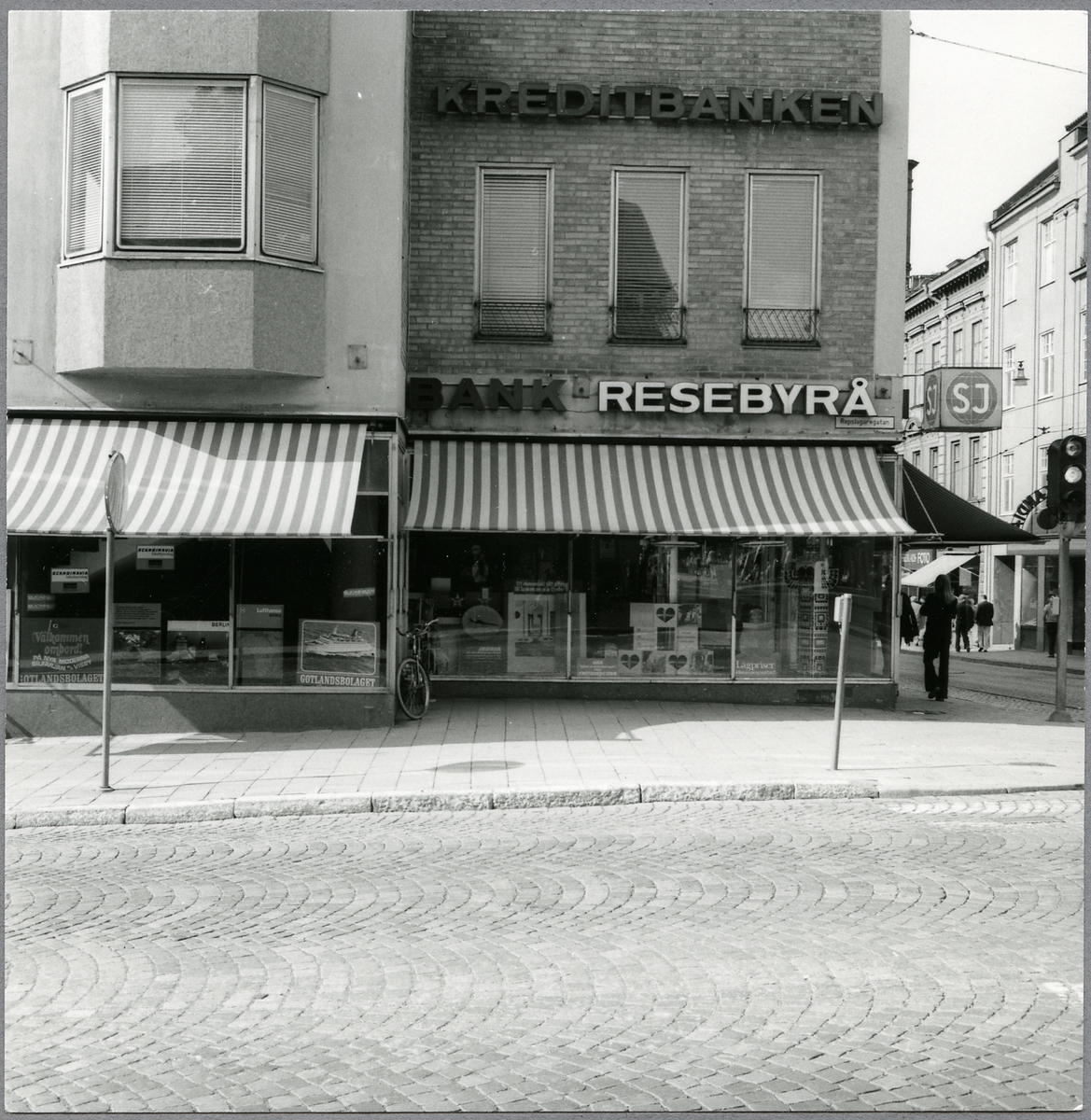 Statens Järnvägar, SJ Resebyrå i hörnet av Drottninggatan/Repslagaregatan.