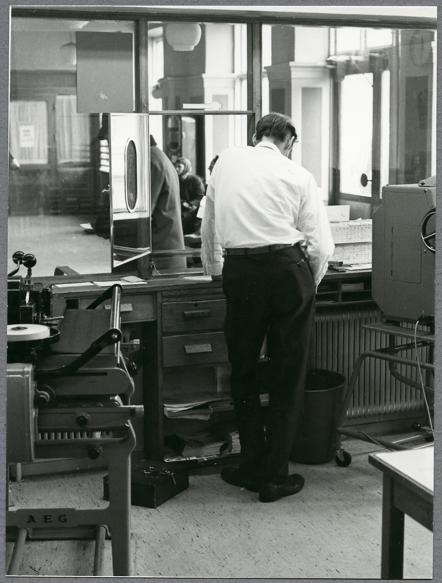 Interiör av Skövde stationshus, biljettexpeditionen.
