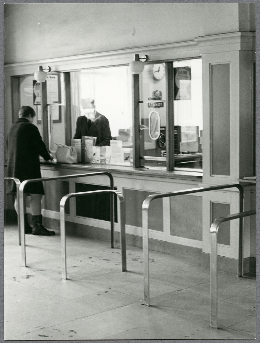 Interiör av Skövde stationshus, biljettexpeditionen.