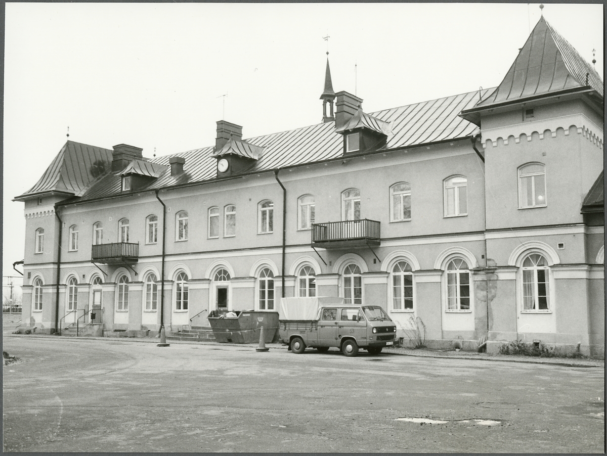 Statens Järnvägar, SJ arbetsfordon parkerat vid stationshuset.