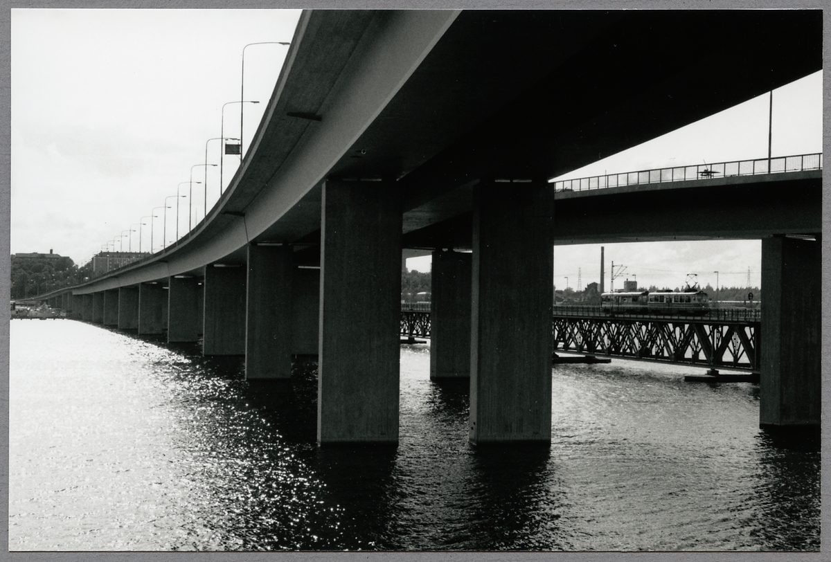 Lidingövägbron, Stockholm - Södra Lidingöns Järnväg, SSLidJ spårvagn 21 och SSLidJ spårvagn 28.