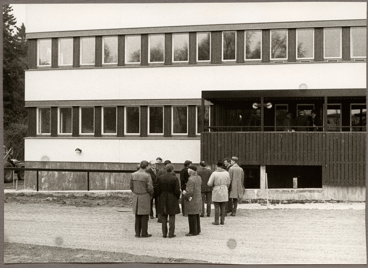 Personal vid Statens Järnvägar, SJ, utanför SJ-skolan i Ängelholm.