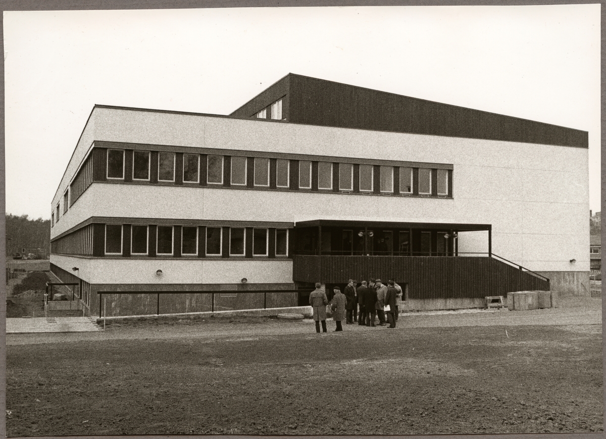 Personal vid Statens Järnvägar, SJ, utanför SJ-skolan i Ängelholm.