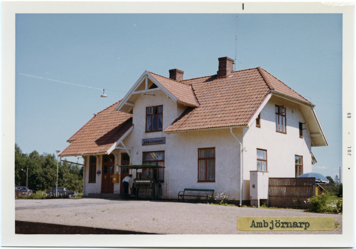 Titel: Vy över Ambjörnarps Station. Byggnadsår 1906. Arkitekt T J Folcke, Göteborg.