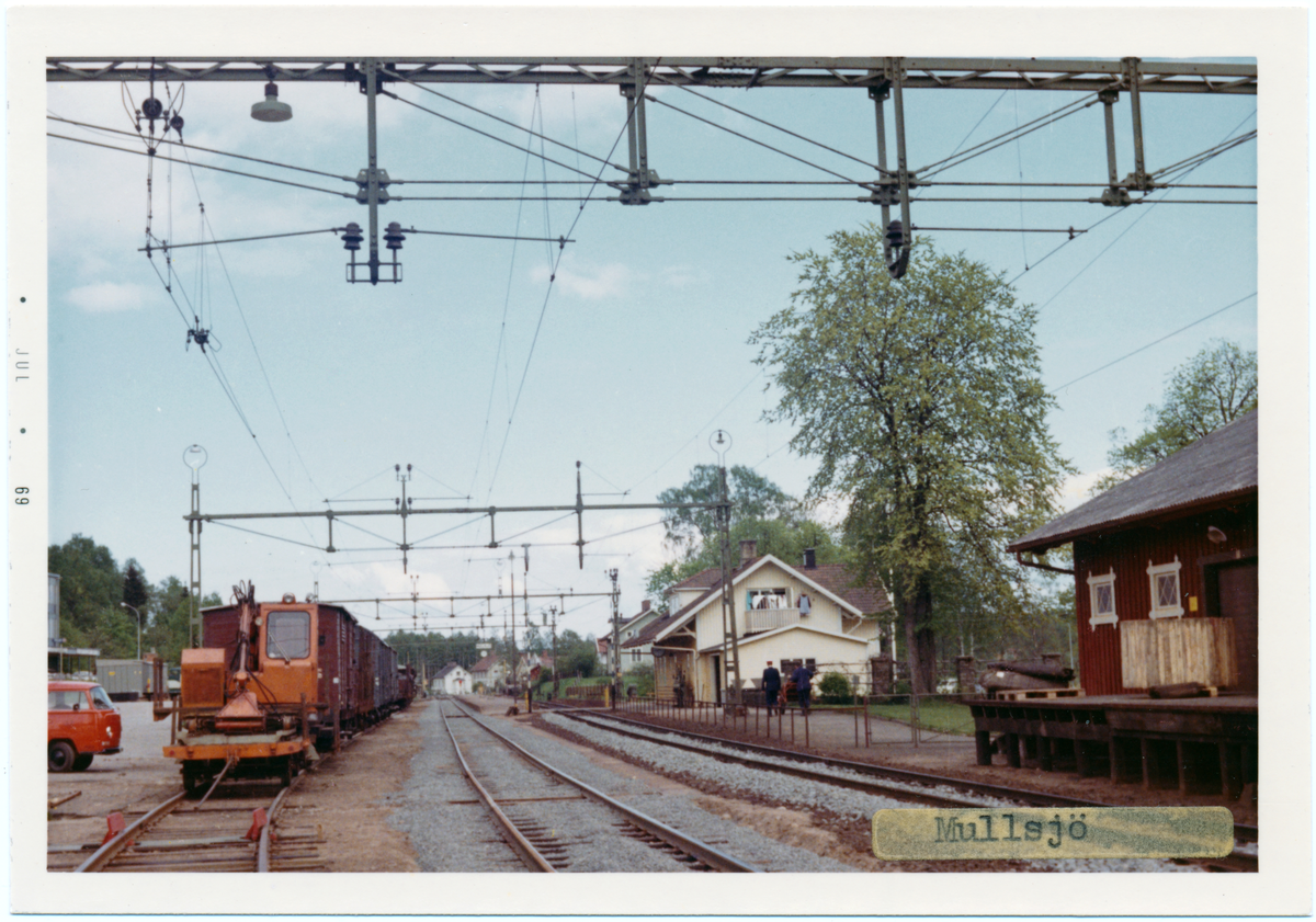 Vy över Mullsjö Station. Byggn-år 1927. Arkitekt: A Ekengren. Om eller tillbyggnadsår 1966.
